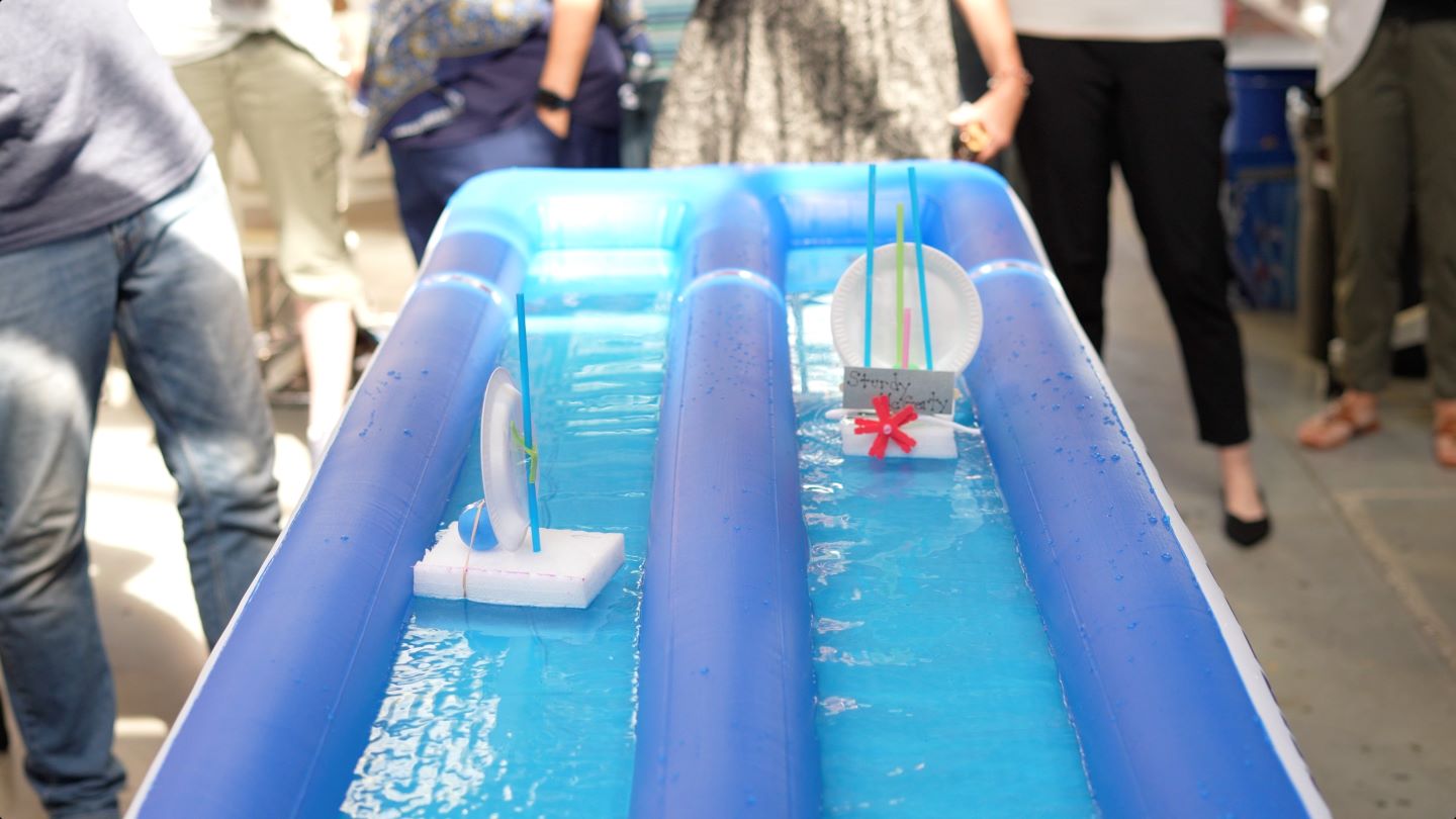 Each team will get two timed trials of their sailboats. The trial with the fastest time will be the official time for that team. The timer should start when the sailboat is released inside the body of water (pool) and end when the boat crosses the line. The team with the fastest time of the whole class will win the design challenge. Between trials, encourage students to talk about what went well and didn’t go well in their first time trial. Students can iterate on their design and make changes in order to have a better time during the second trial.